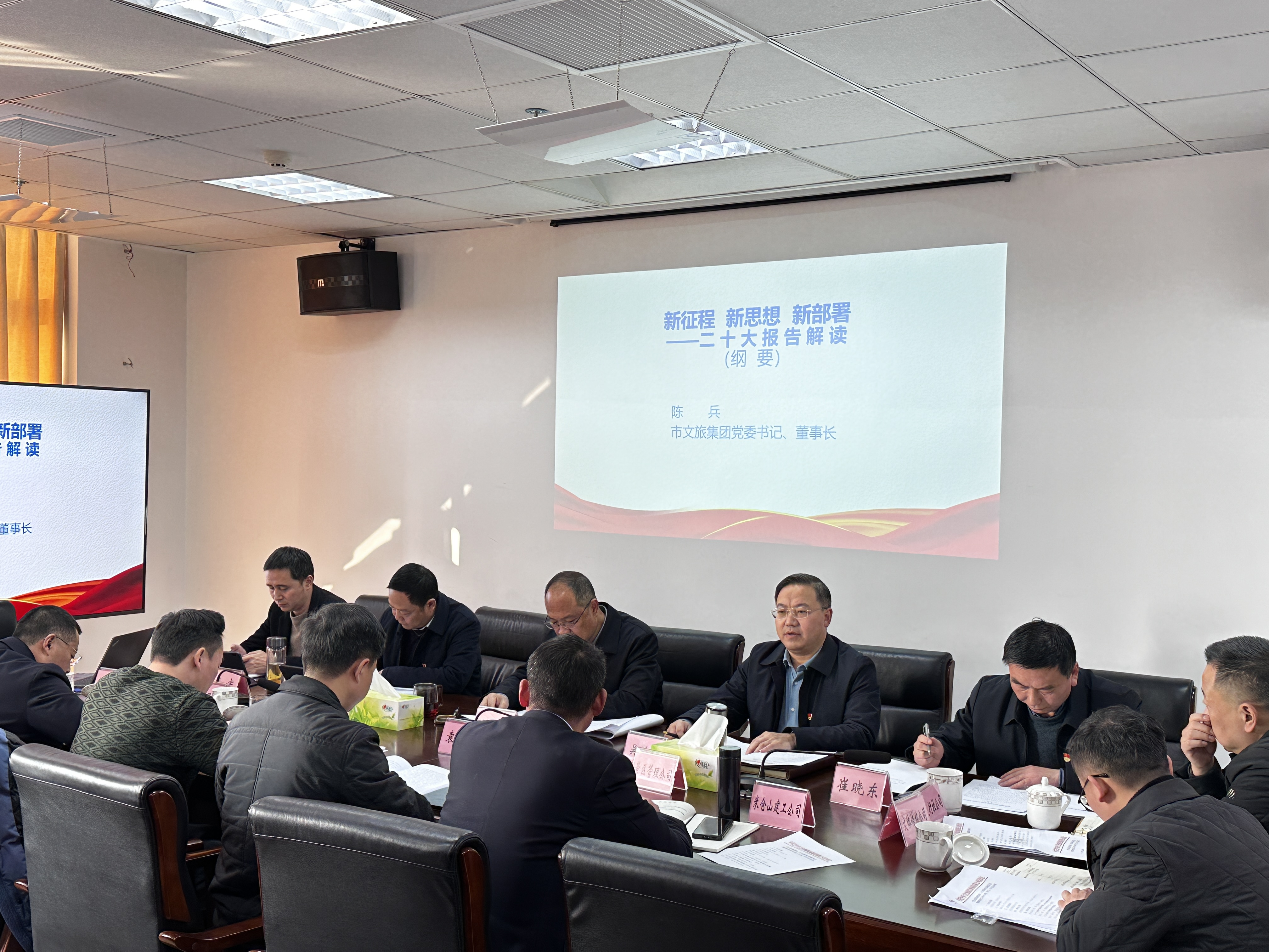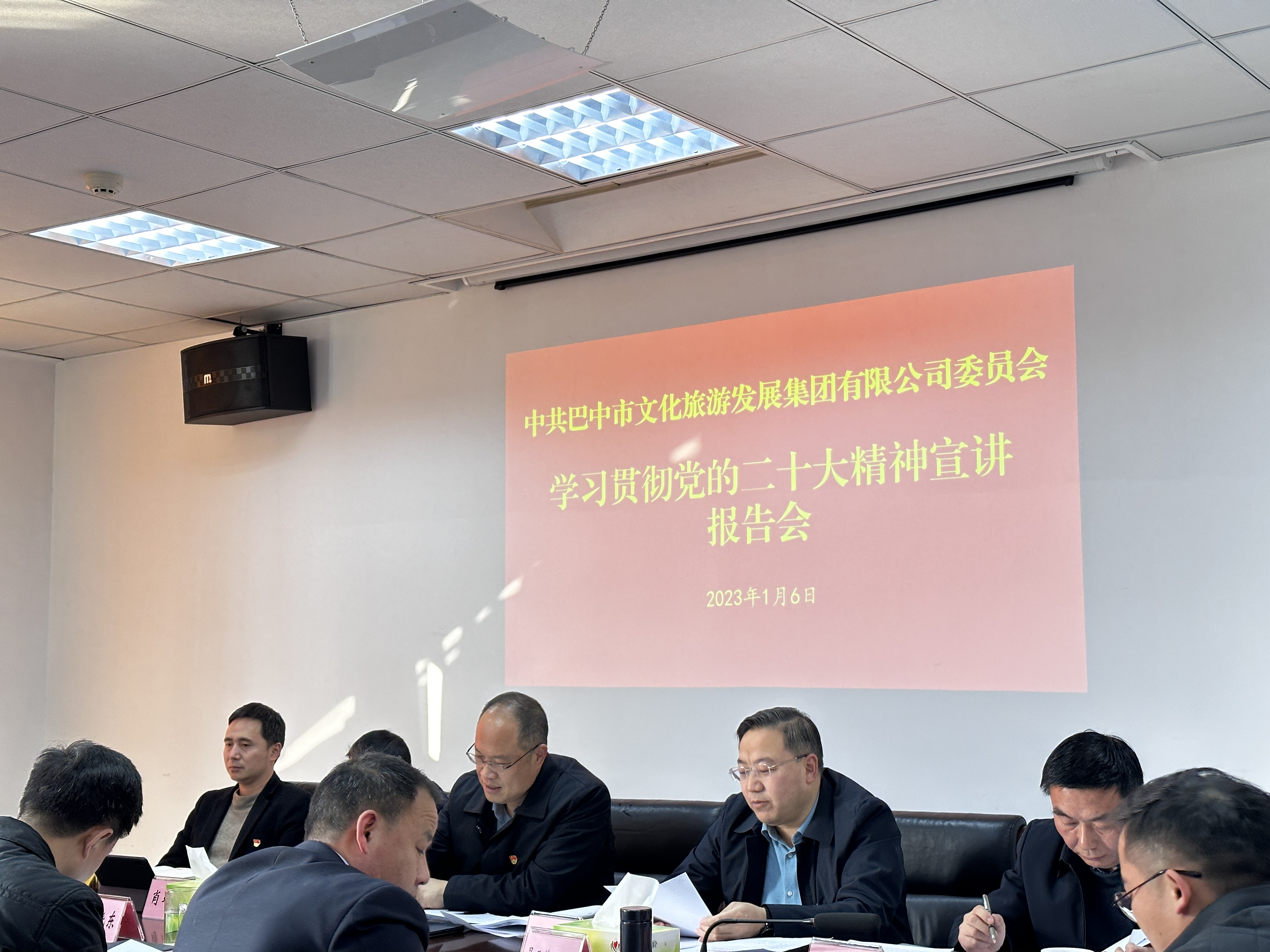 2023年1月6日,市文旅集團黨委書記、董事長陳兵在集團公司以《新征程 新思想 新部署》為題宣講黨的二十大精神。集團領(lǐng)導班子、中層管理人員、子公司負責人、集團機關(guān)支部黨員參會。