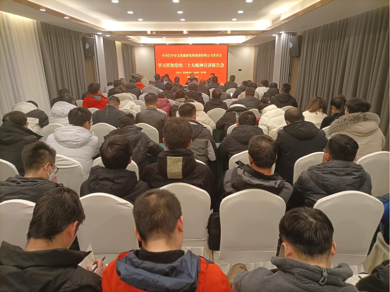 2023年1月11日,市文旅集團(tuán)黨委關(guān)于黨的二十大精神宣講報告會走進(jìn)米倉山建工公司。市文旅集團(tuán)黨委副書記、總經(jīng)理吳學(xué)毅作專題宣講。米倉山建工公司干部職工及各參建單位人員參會。