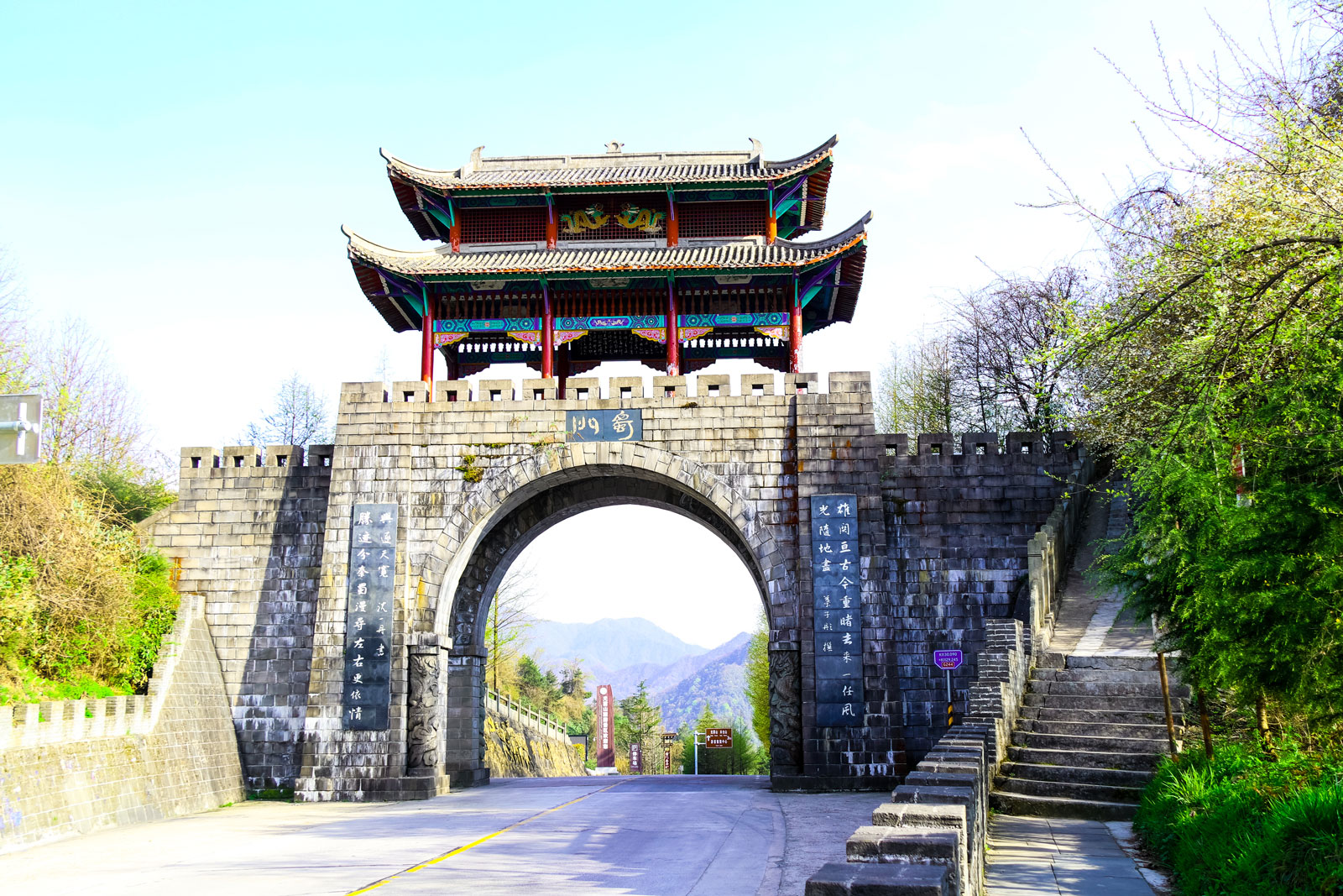 蜀門秦關(guān)是光霧山旅游景區(qū)的北大門,是川陜兩省的分界線。自秦漢以來這里就是出入川陜的一座重要關(guān)隘,曾筑有關(guān)墻平臺(tái),古名“天上”,清代詩人熊一飛曾作詩《曉過天上》:“馬自云中出,人從天上來”,便出自這里。漢王劉幫、漢中王張魯、蜀先主劉備曾先后在此筑臺(tái)建關(guān)、練兵打仗,又名“漢王臺(tái)”;一九三二年紅四方面軍入川,經(jīng)過三年艱苦卓絕的斗爭,在川陜邊境創(chuàng)立了中華蘇維埃共和國第二大蘇區(qū),和廣大勞苦大眾建立了魚水深情。一九三五年紅軍北上抗日,就在這里告別鄉(xiāng)親。后來當(dāng)?shù)孛癖姵T诖吮蓖t軍早歸,又易名“望紅臺(tái)”。著名詩人梁上泉曾寫詩《望紅臺(tái)》,“重重高山擋住視線,我一手把它推開;條條溪流截?cái)嗳ヂ?,我取彎月架起橋來”;形象地表達(dá)了當(dāng)?shù)孛癖娝寄罴t軍的心情。2003年建成這座古代風(fēng)格的關(guān)樓,取名為“蜀門秦關(guān)”。