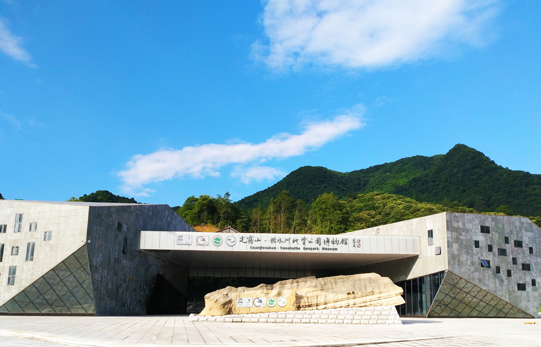 光霧山·諾水河地質(zhì)公園博物館是按照世界地質(zhì)公園的要求建設(shè)的,總建筑面積4888.66平方米,中國(guó)著名書法家范曾為其題寫了館名。館前陳列一塊重388噸、長(zhǎng)18.8米的龜裂紋灰?guī)r巖石,距今約4.77-4.56億年,俗稱龍鱗石。館內(nèi)利用圖片、文字、模型、實(shí)物、地質(zhì)標(biāo)本、影視等形式,采取聲、光、電高科技手段,全方位展示光霧山的地質(zhì)遺跡、地貌景觀、科學(xué)價(jià)值以及資源保護(hù)和開發(fā)建設(shè)等內(nèi)容。