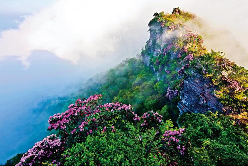 香爐山位于川陜交界處,海拔2329米,因其四座山嶺由主峰向四周延伸,遠(yuǎn)望好像一座巨型香爐,得名香爐山。站在分水嶺看香爐山,前面的一座山峰好像一只大烏龜,后面跟著許多小烏龜,有人把這里稱為“群龜觀?!?。目前香爐山主要開發(fā)的景點(diǎn)有:一覽臺(tái)、香爐迎暉、登峰造極、高香祭天、云海雙獅、經(jīng)卷巖、林海觀潮、天梯云棧等。香爐山的山峰、山脊為沉積巖地貌,土壤瘠薄,含水量少,經(jīng)長(zhǎng)期的風(fēng)霜雪雨侵蝕,構(gòu)造出奇特的山峰、峭壁、懸崖,壯麗秀美,景觀獨(dú)特。在這里生長(zhǎng)的喬木、灌木經(jīng)千百年的風(fēng)霜磨勵(lì),樹干虬曲,樹枝短小,鐵骨錚錚,似龍蛇盤繞,枝逸旁出,形態(tài)各異,株株奇特,與奇峰、怪石、絕壁溶為一體,古樹盆景,堪稱一絕。香爐山天象景觀極為奇特,日出、晚霞、云海極為壯觀,每當(dāng)早晨,或傍晚,天空都會(huì)出現(xiàn)彩霞景觀,給人以置身仙境的感覺。盆景、日出、晚霞、云海稱為“香爐四絕”??梢杂眠@樣幾句詩(shī)來概括香爐山的景色:天生香爐升紫煙,雙獅云海飄流嵐。群龜觀海母帶子,九龍爭(zhēng)艷合家歡。朝霞噴金灑大地,夕陽(yáng)放彩照壁巖。杜鵑盤虬蓋峰嶺,林海翻波堆萬山。
