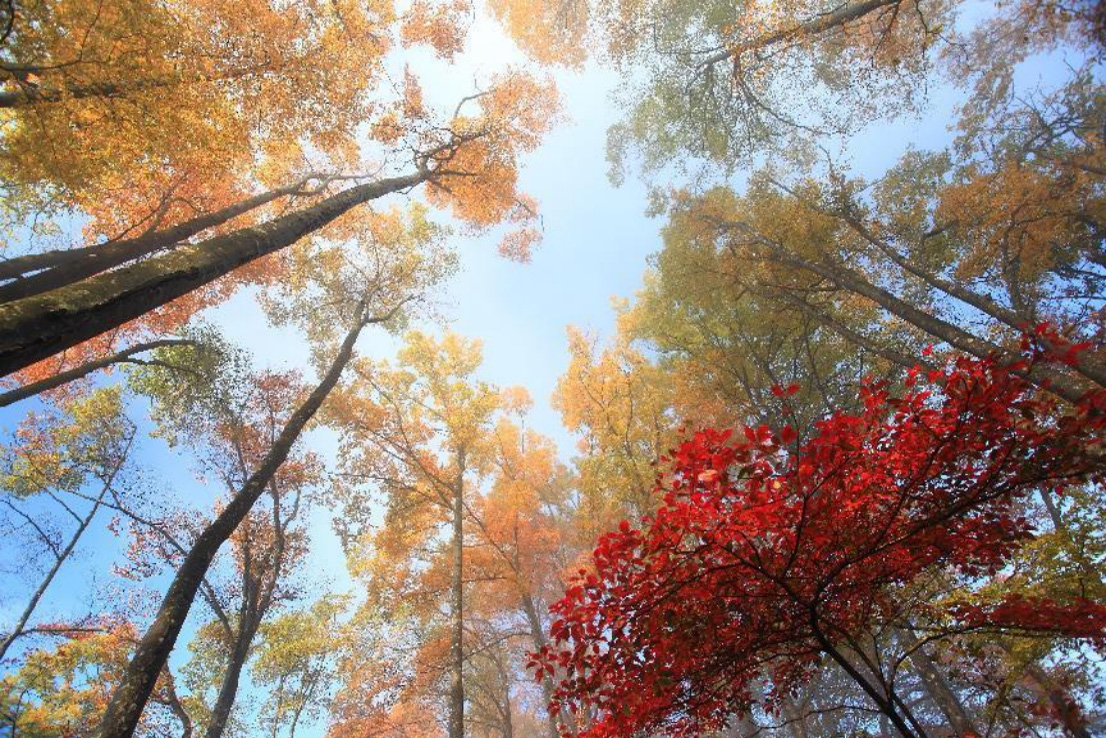 天然畫廊,是大自然留給人們愉悅享受的精品。她如一首詩,供人們默讀而細(xì)味;她如一幅畫,令人們沉醉而遐思,曾勾起多少文人雅士為此揮毫潑墨而贊美,多少游人至此為之驚嘆、折服而無語,她美麗的畫面?zhèn)鞅榱舜蠼媳薄⒋笱蟊税?。我們信步林蔭棧道,置身天然畫廊,似乎進(jìn)入了一個(gè)童話世界,首先映入我們眼簾的是如麻桿般的巴山水青岡,亭亭玉立,各展身姿,神韻自然。這里的景致因時(shí)而變,應(yīng)有盡有,季相萬千,無時(shí)不美。早晨,云蒸霞蔚,流嵐飄渺;中午,陽光透葉,綠蔭匝地;傍晚,落霞滿天,綠葉披彩;這里的景色一年四季也各不相同,春天,春風(fēng)帶著春雨浸潤著大地,綠芽在樹梢間萌動(dòng),一片嫩綠的世界散發(fā)出陣陣清香;山花在山野間競相開放,點(diǎn)綴著綠色的海洋;飛鳥山雀在叢林中躁動(dòng)啼鳴,為大地增添了勃勃生機(jī),當(dāng)你來到這里時(shí),能真正感受到春天的氣息與活力。夏天,綠樹蔥郁,蒼翠欲滴,步入其間,涼爽愜意,暑氣頓消。秋天,漫山遍野的綠樹叢中,點(diǎn)綴著或黃或橙或紅的顏色,一片五彩斑斕的彩林景觀呈現(xiàn)在你的眼前,紅葉與綠葉齊飛,層林同群峰共染。樹葉漸漸地由黃轉(zhuǎn)橙,由橙轉(zhuǎn)褐,由褐變紅,一夜秋霜,霎時(shí),萬山紅遍、層林盡染。真是:巴山一夜風(fēng),木葉映天紅,色比桃花艷,秋如春意濃。冬天,玉樹瓊花,銀裝素裹,霧淞冰掛,玲瓏剔透。