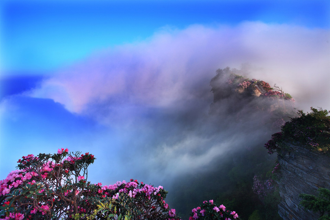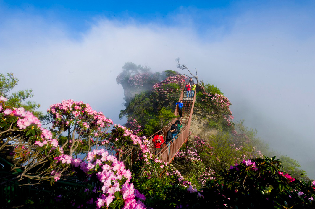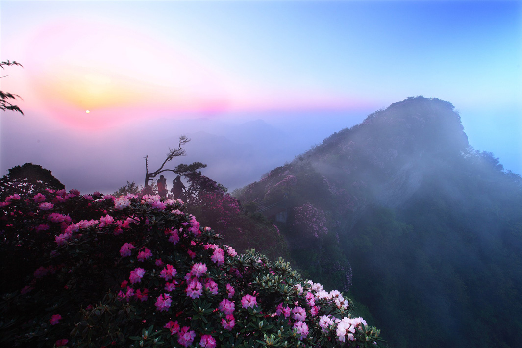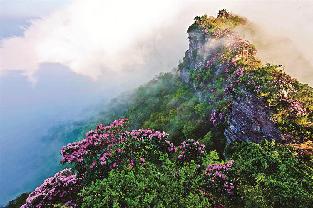 春賞杜鵑是光霧山春季旅游的特色品牌,而香爐山的高山杜鵑則是這一特色品牌中的極品。每年5月,香爐山的云霧與綻放的高山杜鵑如期相約,云嶺花海景象便展露無(wú)遺。綻放在云蒸霧繞的山嶺上的杜鵑花,或傲然而立,或絕壁叢生,或純真素雅,或嬌艷欲滴,爭(zhēng)奇斗艷地匯集成一片花的海洋。云嶺花海是光霧山一道絕美景致,它掀起了巴山的紅蓋頭,帶給了世界一個(gè)驚喜。