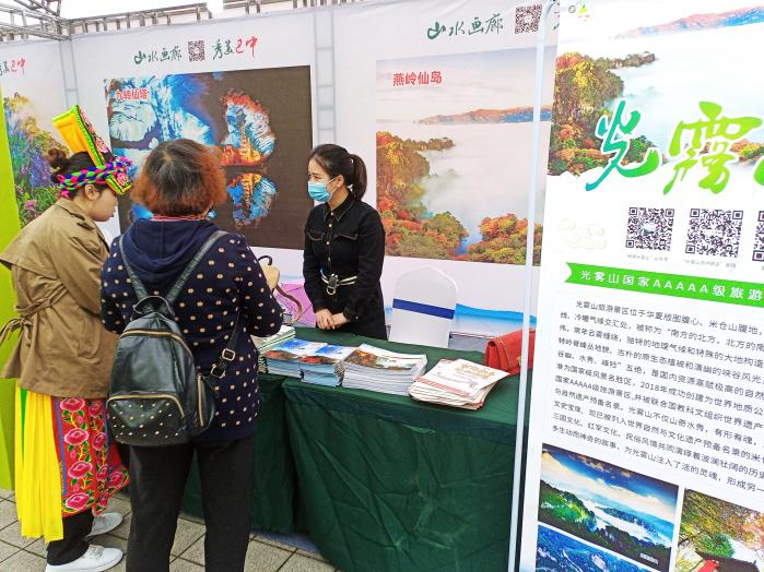 為進一步開拓客源市場,提升光霧山-諾水河品牌知名度,在巴中市文廣旅局的精心組織下,巴中市文旅集團黨委副書記、總經理王德平帶隊參加了此次博覽會。在城市旅游集中展示環(huán)節(jié),王德平就光霧山-諾水河文旅資源做了推介,詳細介紹了兩大旅游區(qū)自然景觀、生態(tài)環(huán)境、地質科考、人文歷史等特色資源,闡述了光霧山成功創(chuàng)建國家5A級旅游景區(qū)、光霧山十景、諾水河換新升級、優(yōu)化提升《夢境光霧山》及外部交通環(huán)境等最新變化,并現(xiàn)場宣布了近期景區(qū)的優(yōu)惠政策。在博覽會文化旅游商品展區(qū)、景區(qū)景點現(xiàn)場咨詢區(qū),光霧山、諾水河參會人員通過發(fā)放資料和解答咨詢,積極向現(xiàn)場來往游客及旅行社介紹景區(qū)資源和市場政策,對景區(qū)起到了良好的宣傳推廣效果。