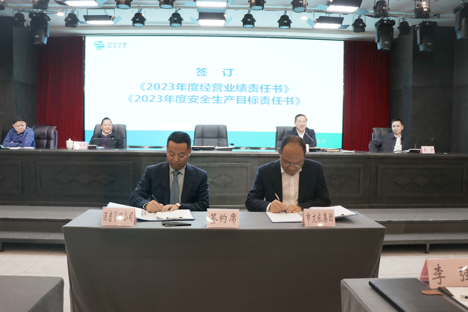 為深入貫徹市屬?lài)?guó)有企業(yè)市場(chǎng)化實(shí)體化轉(zhuǎn)型發(fā)展工作專(zhuān)題會(huì)精神,進(jìn)一步提升集團(tuán)發(fā)展質(zhì)量、創(chuàng)新發(fā)展思路,推動(dòng)集團(tuán)市場(chǎng)化實(shí)體化轉(zhuǎn)型發(fā)展工作走深走實(shí)。3月23日,市文旅集團(tuán)舉行下屬企業(yè)2023年度經(jīng)營(yíng)業(yè)績(jī)責(zé)任書(shū)簽訂儀式。集團(tuán)領(lǐng)導(dǎo)班子成員、本部中層管理人員,下屬企業(yè)領(lǐng)導(dǎo)班子成員參加了儀式。儀式由集團(tuán)總經(jīng)理吳學(xué)毅主持。