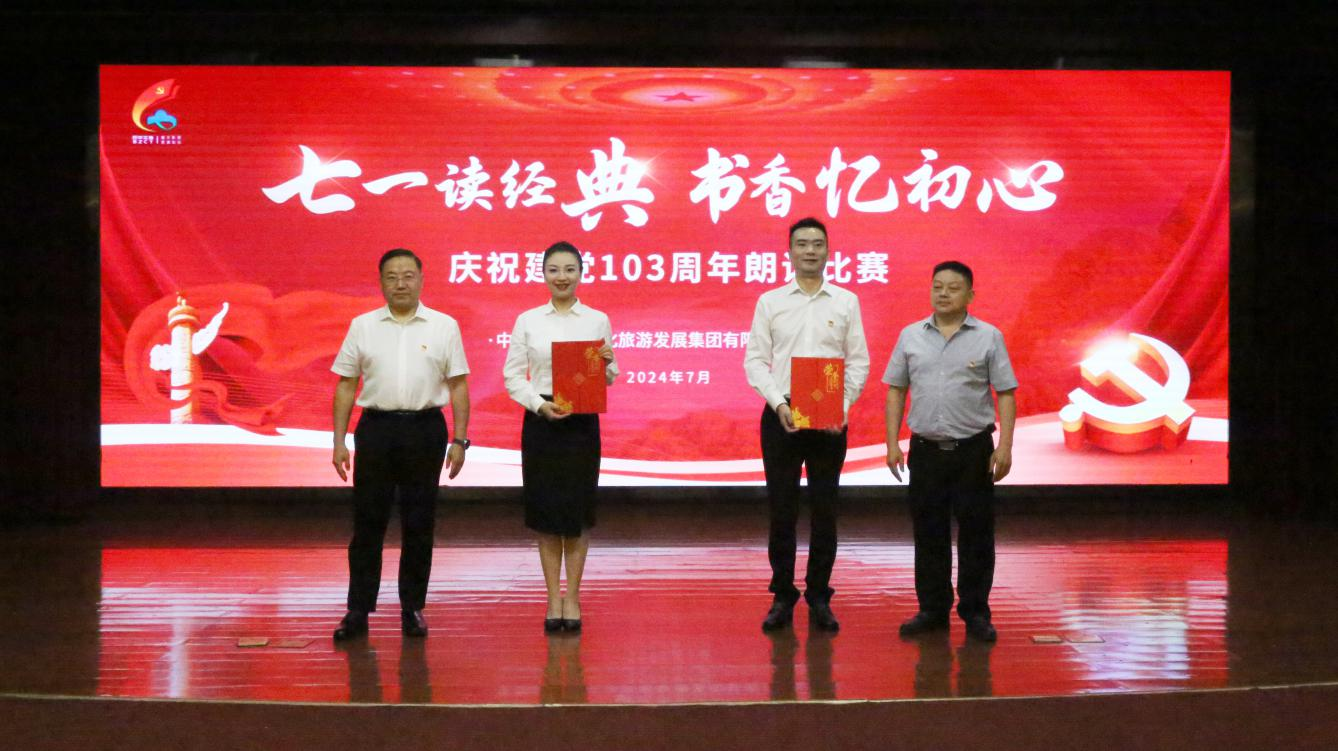 表彰大會上,出席會議領導為3個先進基層黨組織、3名優(yōu)秀黨員、2名優(yōu)秀黨務工作者、12個黨員先鋒示范崗頒發(fā)了榮譽證書,激勵全體黨員干部職工堅定信念、擔當作為?!捌咭蛔x經(jīng)典 書香憶初心”主題朗誦比賽共9個節(jié)目,分別采取個人獨誦、雙人誦、團隊合誦的方式,整臺朗誦表演氣氛熱烈、高潮迭起、精彩紛呈,以《彰文塑旅 六載輝煌》《以文塑旅,以旅塑行——青山不負我,我定不負青山》《一條紅葉路,浪卷巴蜀潮》等為題,挖掘集團經(jīng)營發(fā)展歷程,展現(xiàn)集團干部職工闊步新征程、弘揚新?lián)?、展現(xiàn)新風采的奮進故事?!恫恍唷贰稄妵形摇贰睹利愔袊贰冻з澑杞o黨聽》《可愛的中國》《永遠跟黨走》等朗誦節(jié)目以多種藝術形式生動展現(xiàn)了中國共產(chǎn)黨的光輝奮斗歷程,歌頌黨的豐功偉績,禮贊新時代的幸福生活,以飽滿的熱情表達文旅人對黨最深情的贊美。參賽選手們情感真摯懇切,使得陣陣掌聲不絕于耳,充分展示出新時代文旅人昂揚向上的蓬勃朝氣,得到了領導及專家評委的肯定。經(jīng)過激烈角逐,共評選出一等獎1個、二等獎2個、三等獎3個,優(yōu)秀組織獎3個。
