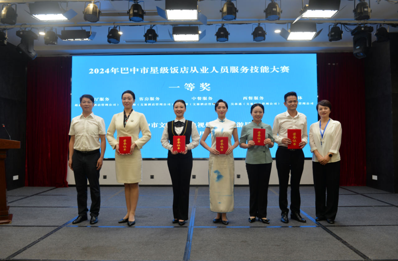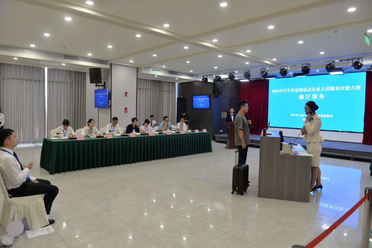 8月6日,由巴中市文化廣播電視體育和旅游局舉辦的2024年巴中市星級(jí)飯店從業(yè)人員服務(wù)技能大賽在江北賓館成功舉行。