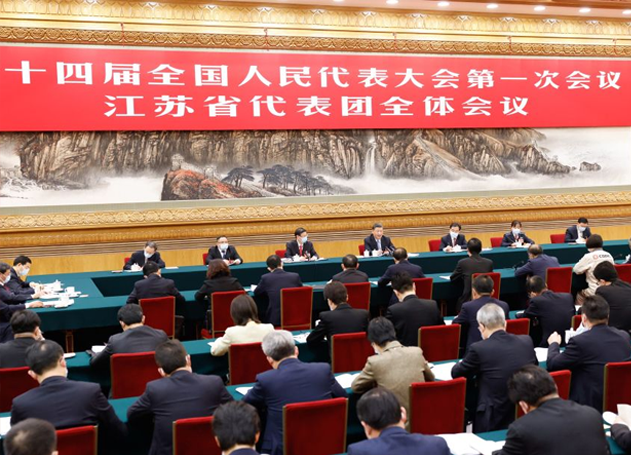 3月5日,中共中央總書記、國家主席、中央軍委主席習近平參加他所在的十四屆全國人大一次會議江蘇代表團審議。新華社記者 李學仁 攝 新華社北京3月5日電 中共中央總書記、國家主席、中央軍委主席習近平5日下午在參加他所在的十四屆全國人大一...