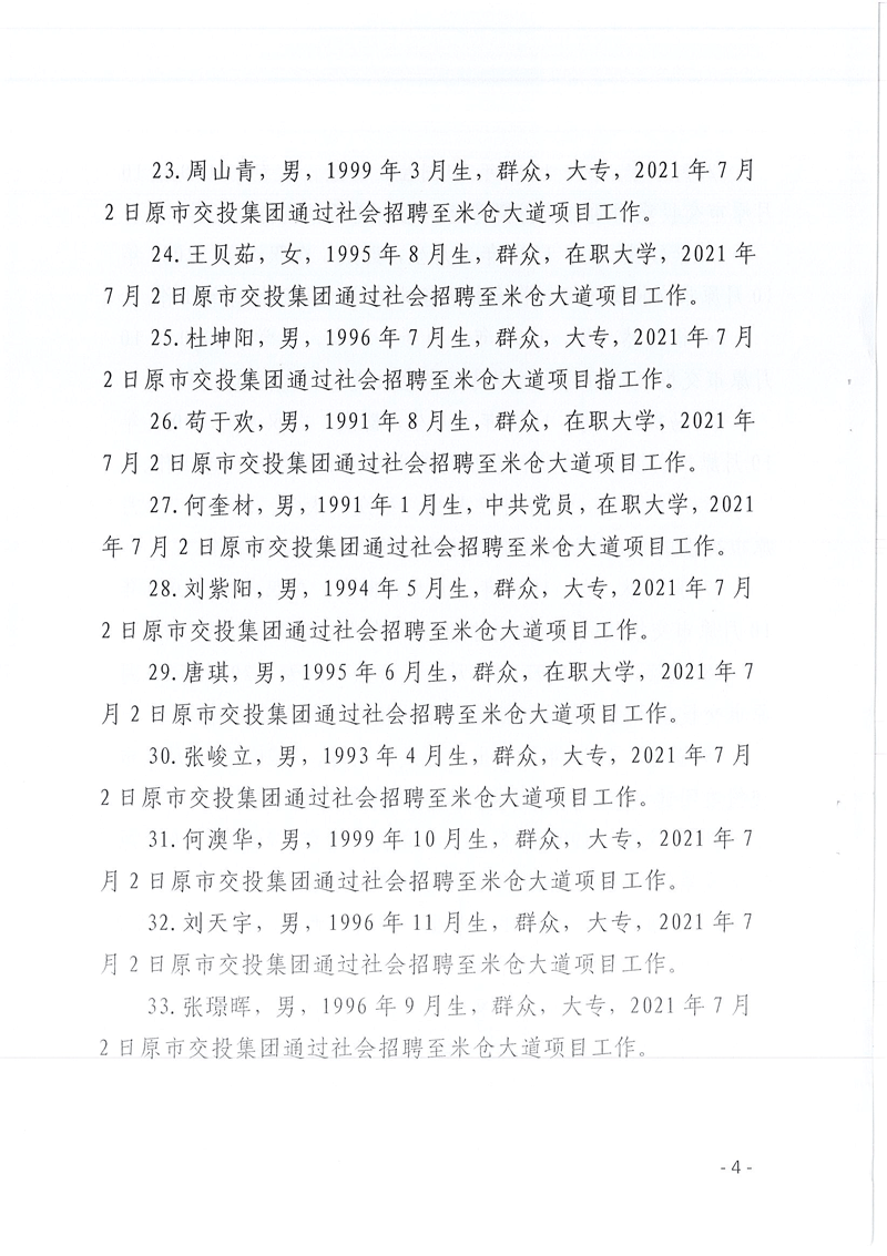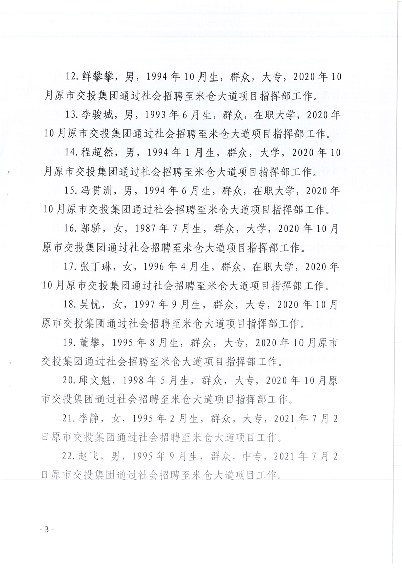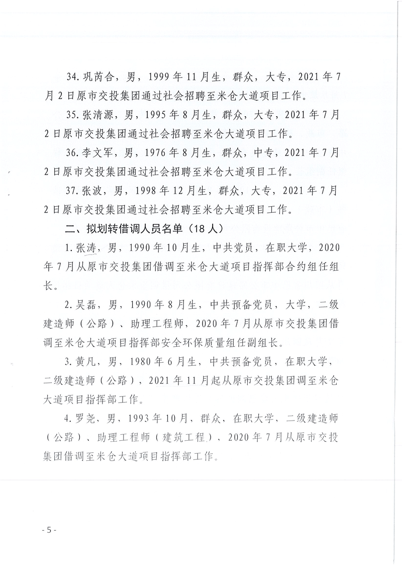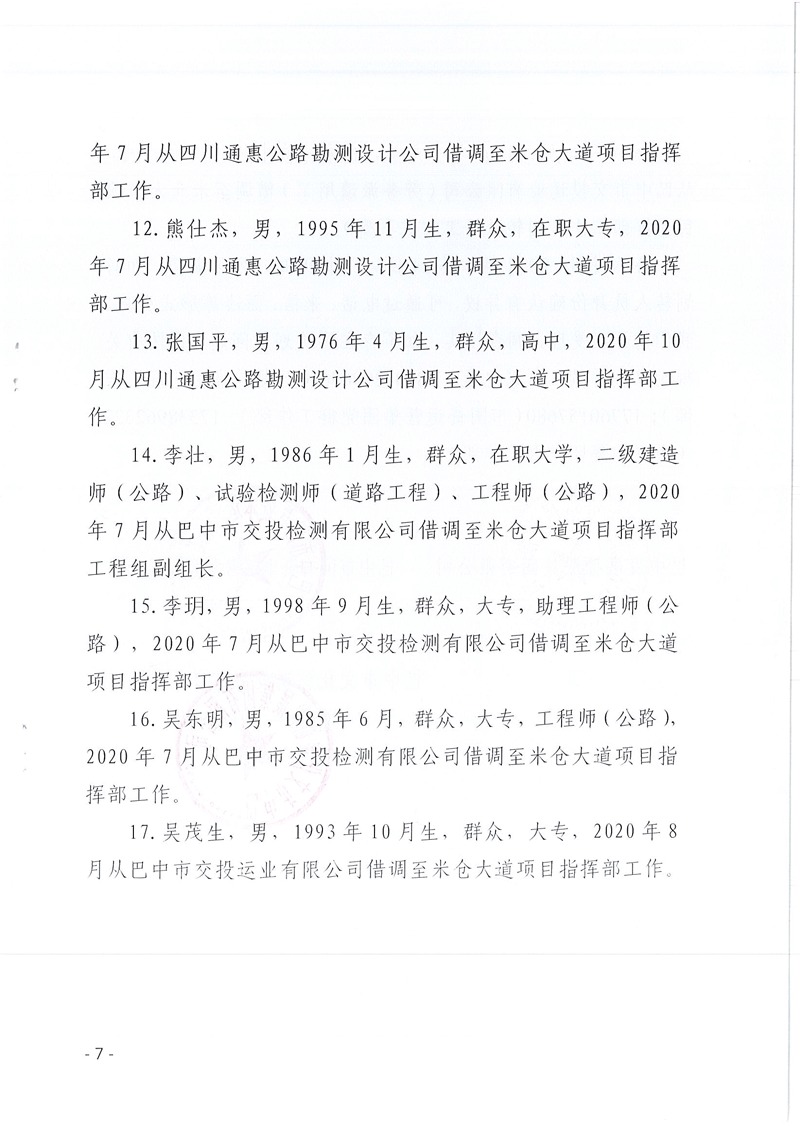 巴中發(fā)展控股集團有限公司、巴中市國有資本運營集團有限公司、巴中市文化旅游發(fā)展集團有限公司關(guān)于擬劃轉(zhuǎn)至米倉山建工公司有關(guān)人員名單的公示