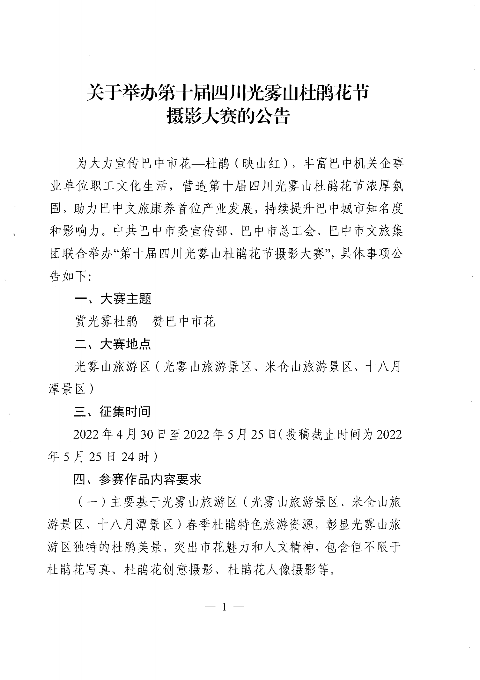 關(guān)于舉辦第十屆四川光霧山杜鵑花節(jié)攝影大賽的公告
