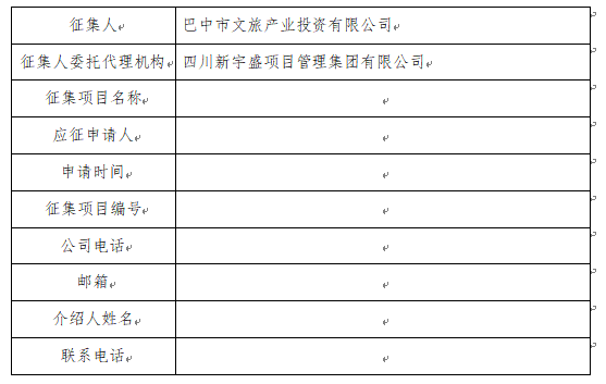 征集人:巴中市文旅產(chǎn)業(yè)投資有限公司。