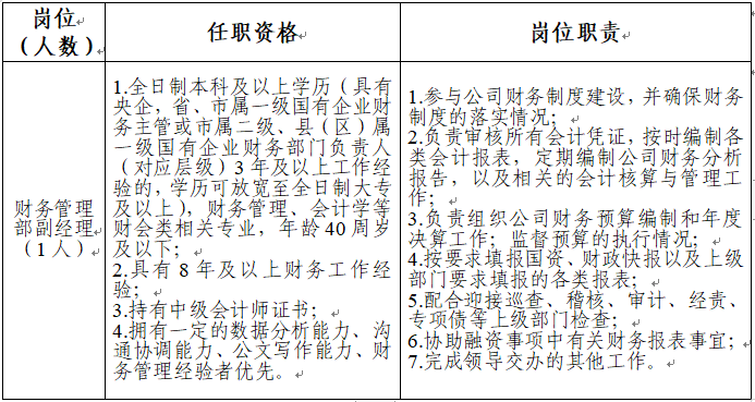 6.年齡要求按照招聘崗位情況表中的要求為準,職位年齡、任職經(jīng)歷等計算截止時間均為公告發(fā)布之日;