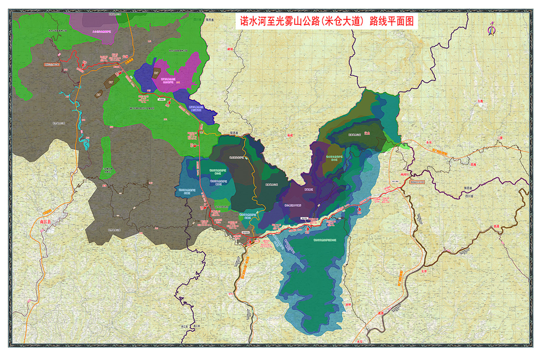 由四川米倉山建設(shè)工程有限公司為業(yè)主的諾水河至光霧山公路(米倉大道)項目,地處巴中市域北部,是《四川省普通省道網(wǎng)布局規(guī)劃(2022-2035年)》中 S301 線、S408 線兩條省道及四川省干線公路網(wǎng)絡(luò)的重要組成部分。項目起于通江縣兩河口鄉(xiāng)與鎮(zhèn)廣高速相接,向西經(jīng)臨江、諾水河、鐵廠及南江縣匯灘、西清、關(guān)壩,止于南江縣光霧山鎮(zhèn)寨坡與G244國道相接。主線全長85.385公里,采用雙向四車道一級公路標準,設(shè)計速度為60公里/小時。項目建設(shè)條件艱難,橋隧比高達69.7%,共設(shè)置隧道30912.5米/13座,橋梁28684米/116座,5條連接線總長6.632公里。總投資約129.8億元,項目建成將極大改善巴中北部山區(qū)交通條件,促進沿線旅游資源開發(fā)和革命老區(qū)、連片貧困地區(qū)經(jīng)濟社會加快發(fā)展,有助于完善四川省普通干線公路網(wǎng)。項目于2019年1月經(jīng)省發(fā)改委批準立項,并列入省重點項目。2020年7月開工建設(shè),總工期48個月。
